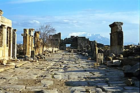 O pavimento da rua principal de Hierápolis mostra